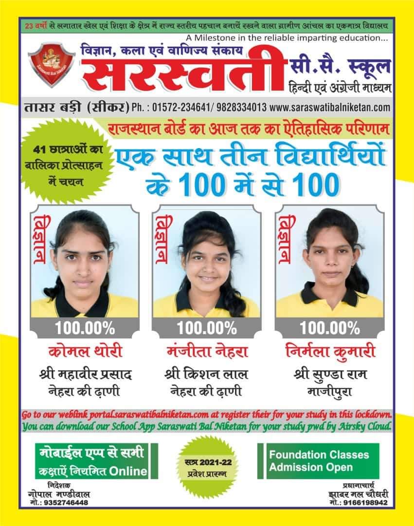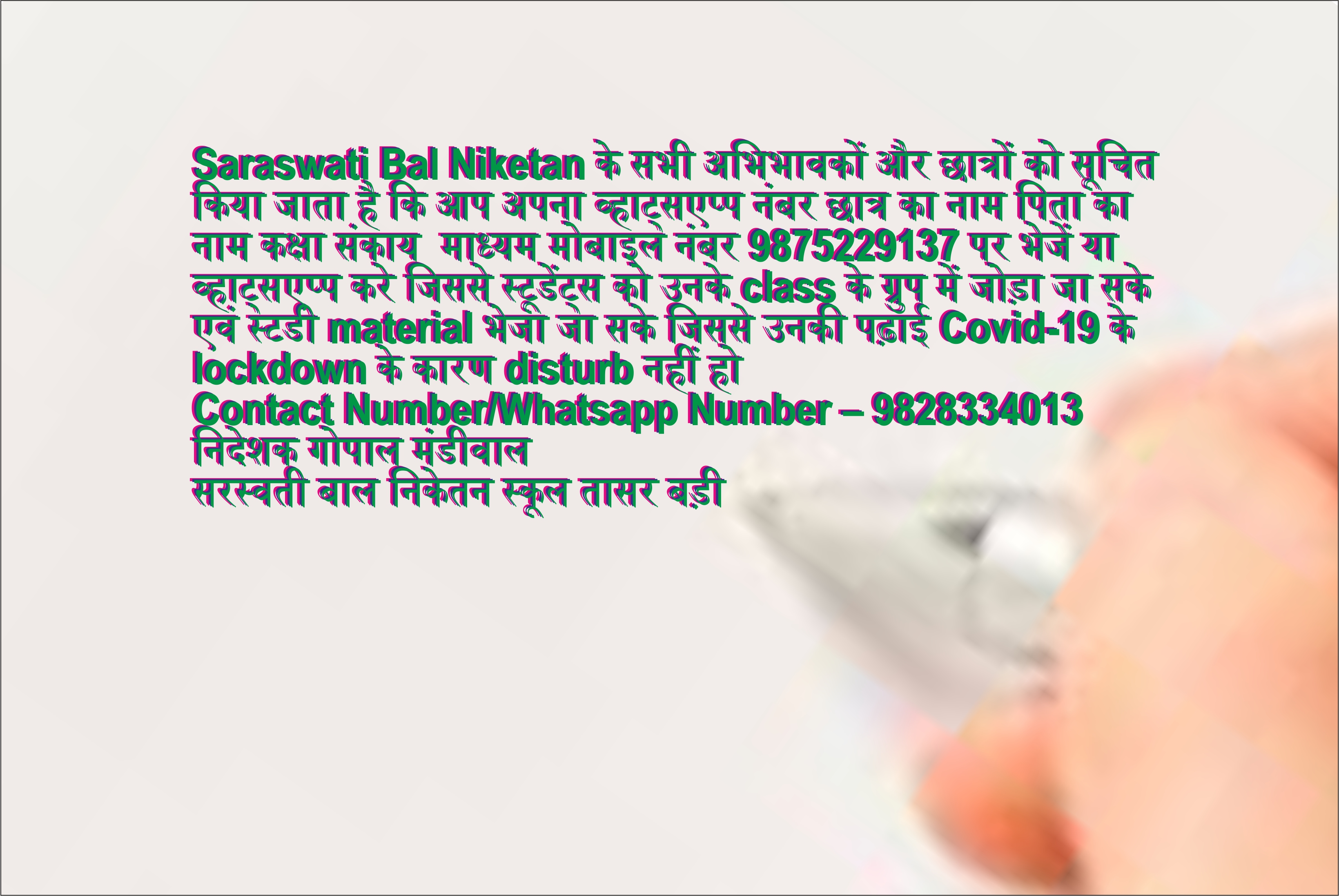 Saraswati Bal Niketan, a temple of learning came into existence on July, 1998 under the founder chairmanship of Shri Gopal Singh Mandiwal. At Present, the School imparts education upto class XII on the Rajasthan Board pattern, Hindi and English Medium co-educational School affiliated to Rajasthan Board up to (10+2) with Arts Commerce and Science stream.
